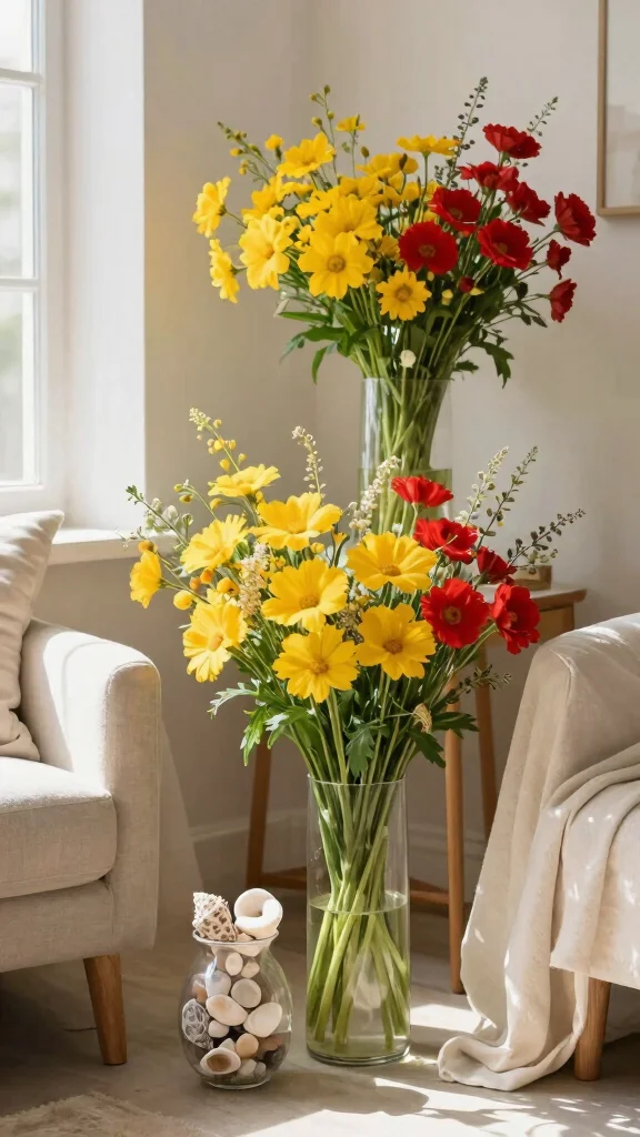 – Choose vases that match flower colors for cohesion.