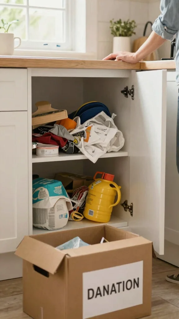 – Set a timer for 15 minutes and tackle one cabinet at a time to avoid feeling overwhelmed.