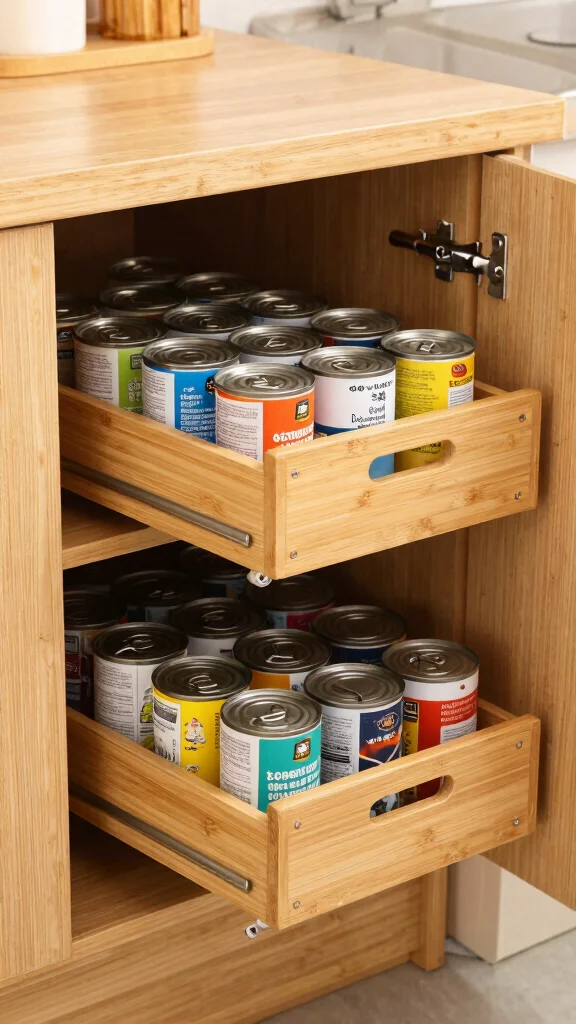 Tired of your canned goods taking over your cabinets? A pull-out can organizer might be just what you need! These clever solutions help stack your cans vertically, keeping them tidy and accessible. You can find options that fit perfectly inside your cabinets or even on a dedicated shelf, saving space and allowing you to see all your choices at a glance. Keep your most-used cans at eye level for effortless access while cooking!