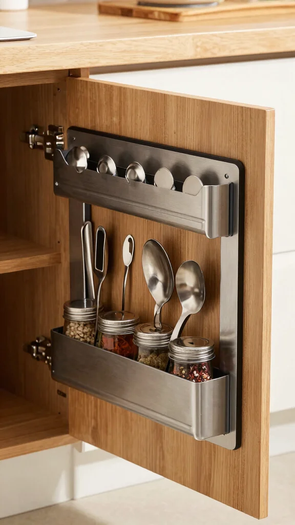 Look for slim, space-saving organizers made from bamboo, stainless steel, or recycled plastics, and install pull-out shelves and adjustable dividers to maximize every inch. Make use of vertical space inside cabinet doors with racks for lids and spices. This supports kitchen storage solutions and efficient kitchen design by reducing unnecessary motion and keeping items accessible.