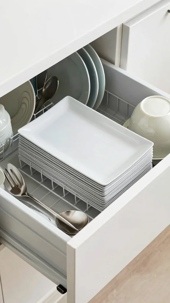 Use drawer dividers to create precise zones for utensils, cutlery, and gadgets. Adjustable dividers let you tailor fit as items change. Pair a slim utensil tray with a dedicated drawer lid organizer to keep lids and measuring tools tidy and reachable. Install vertical dividers or stacking trays to maximize height, not width. Declutter daily-use items to keep the minimalist feel and finish with a non-slip liner to prevent shifting. These space-saving kitchen ideas support minimalist kitchen decor while staying practical.
