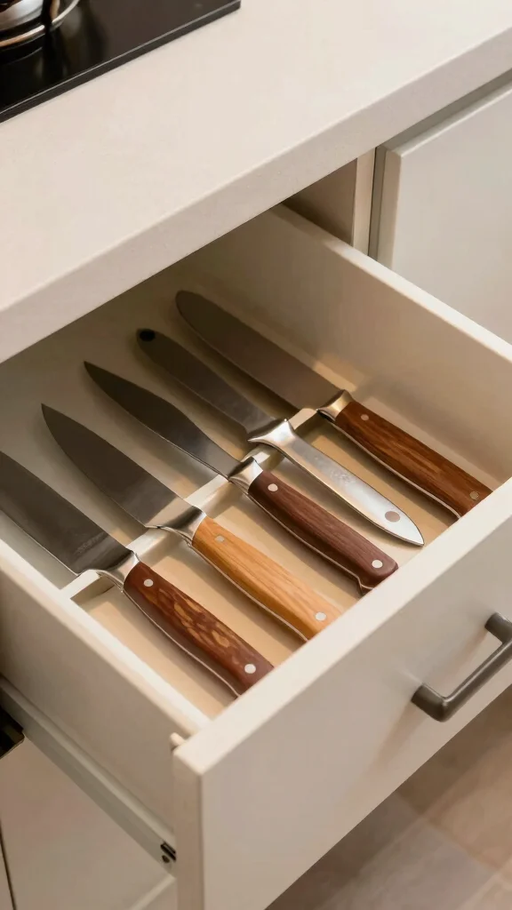 For those who want both safety and easy access to knives, in-drawer knife storage is a perfect solution. This method keeps knives off countertops while ensuring they are stored securely, reducing the risk of accidents. Invest in a dedicated knife drawer insert that fits your drawer perfectly, providing slots for various knife sizes.Regularly checking for wear on your blades ensures safety and efficiency in your cooking. Keep the most frequently used knives towards the front for quick access, making your food prep smoother.- Close the knife drawer when not in use to prevent accidents.- Ensure the insert is sturdy enough for daily use.- Clean the drawer periodically to maintain hygiene.With in-drawer knife storage, you can enjoy a seamless and efficient kitchen experience!
