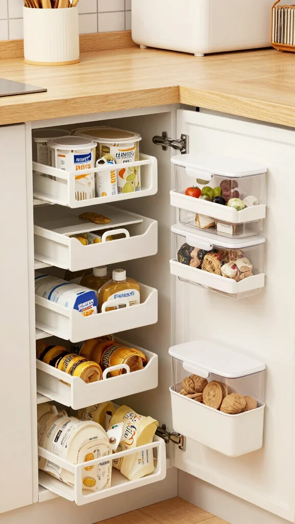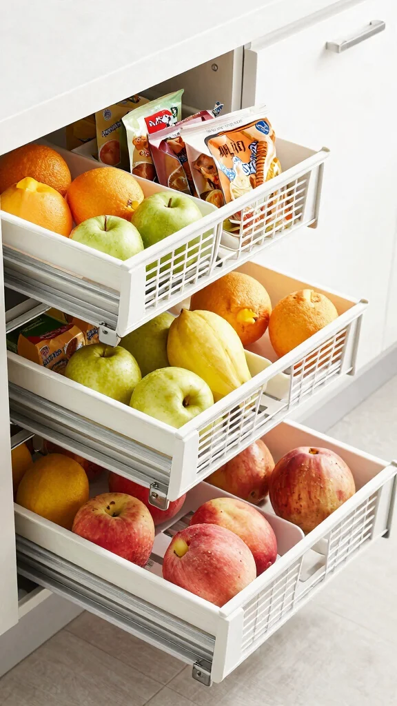For a creative approach to storage, pull-out baskets are a fantastic choice. These practical additions glide smoothly in and out of your drawers, providing easy access to your kitchen essentials without wasting valuable space. They blend functionality with style, making your kitchen both organized and visually appealing.Use these baskets to store everything from fruits to snacks, keeping items within reach while maintaining an orderly kitchen. This design helps you retrieve what you need quickly, minimizing the hassle during busy cooking sessions.- Install a pull-out basket dedicated to baking supplies for convenience.- Choose baskets with a sleek finish to enhance your kitchen’s aesthetic.- Secure the baskets to prevent accidental spills when opened.With pull-out baskets, you create a smart design that keeps your kitchen orderly and functional!