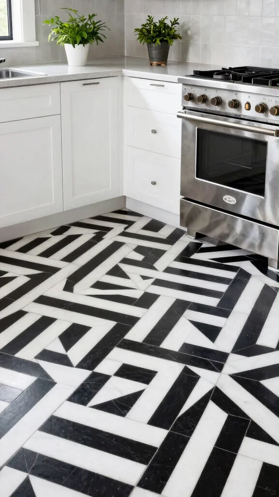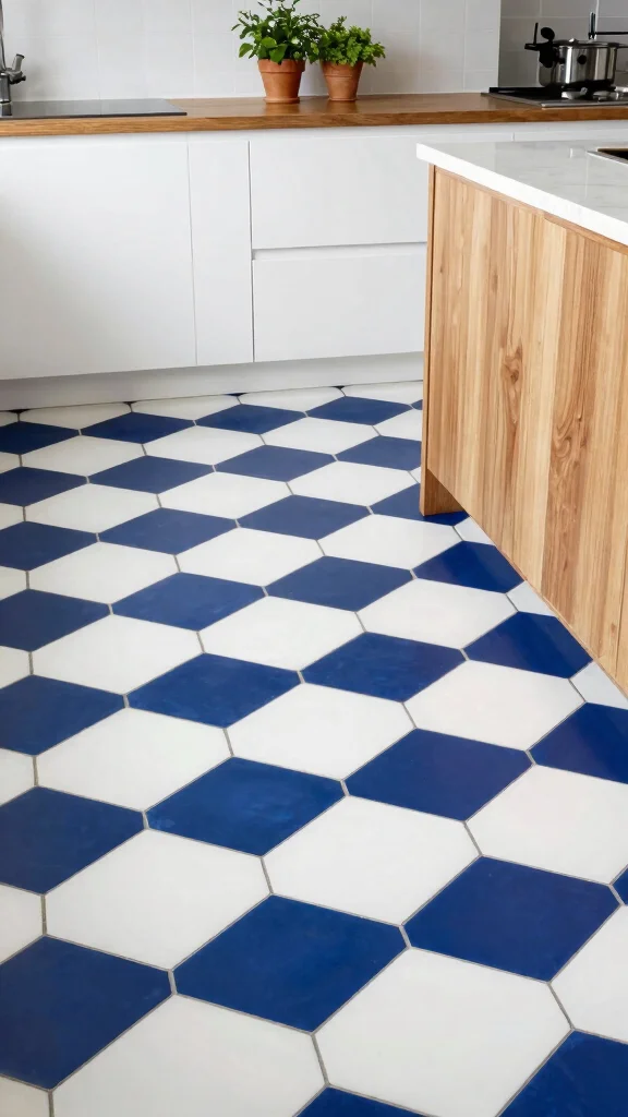 Geometric ceramic tiles are a striking choice that can elevate your kitchen’s design. Their bold, angular shapes and contrasting colors create a lively floor that captures attention and brings visual rhythm. Imagine hexagons in deep navy paired with crisp white triangles, adding a modern flair to your cooking space. This playful yet sophisticated aesthetic allows for personal expression and unique style.