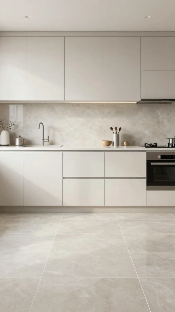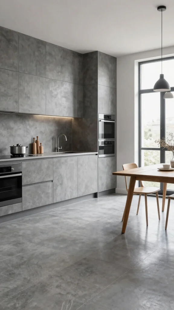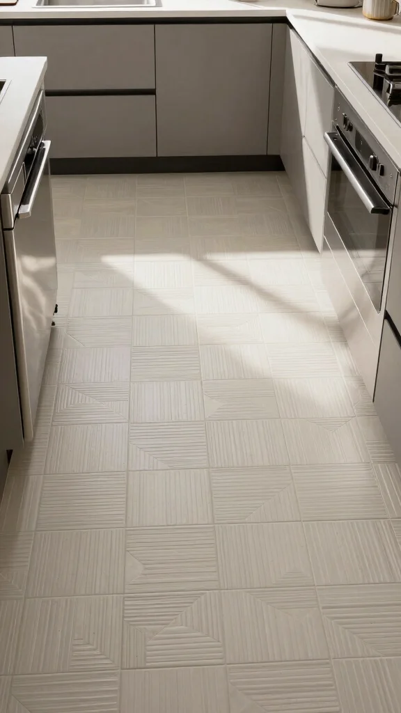 Fun fact: Minimalist cement tiles can make a compact 10×12 ft kitchen feel up to 20% larger thanks to clean lines and monochrome tones. Pair them with stainless steel appliances for an instantly cohesive kitchen floor tile design.