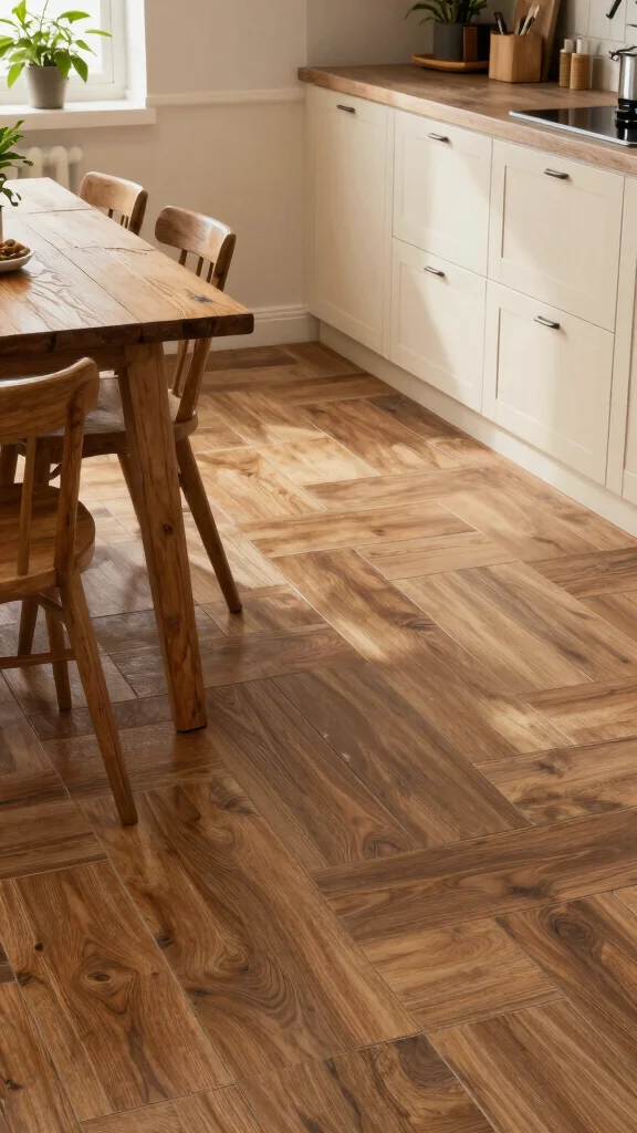 The resilience of wood-look tiles against moisture and scratches ensures they remain beautiful for years. Their ease of cleaning adds to their appeal, allowing you to enjoy your kitchen without the fuss.