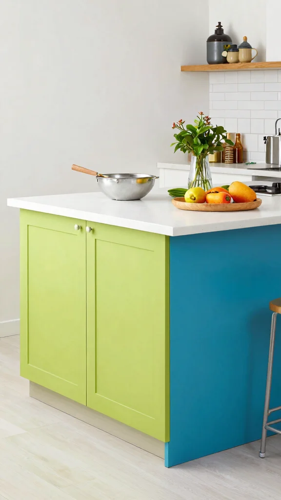 Incorporate a colorful island design to inject personality and vibrancy into your kitchen’s overall aesthetic.