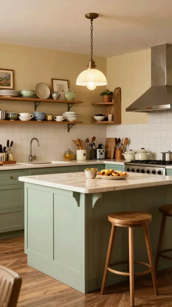 14. Vintage-Inspired Kitchen with Island