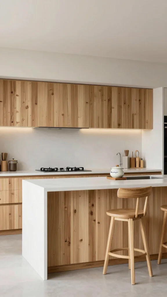 To cultivate this serene atmosphere, incorporate natural materials like bamboo or wood, which add warmth and texture. A neutral color palette with bold accents can introduce visual interest without overwhelming the space. A custom island design allows for easy interaction during gatherings, fostering a sense of community.