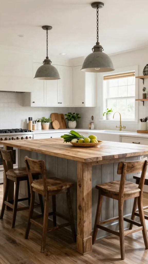 – Use reclaimed wood for the island for authenticity.