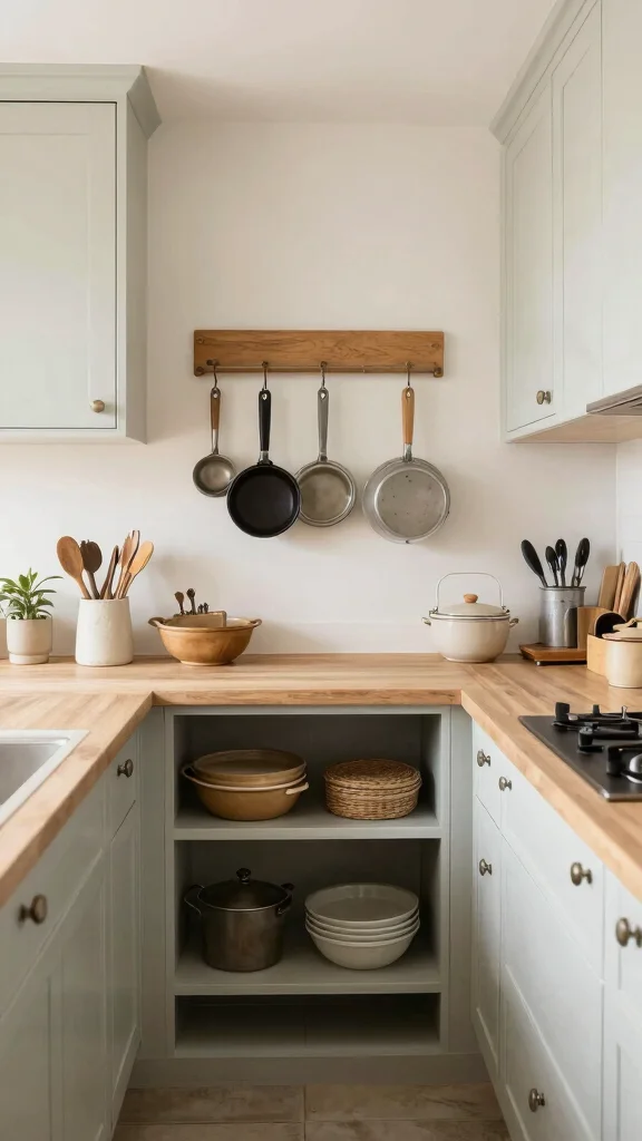 – Use pegboards for hanging pots and maximizing storage.