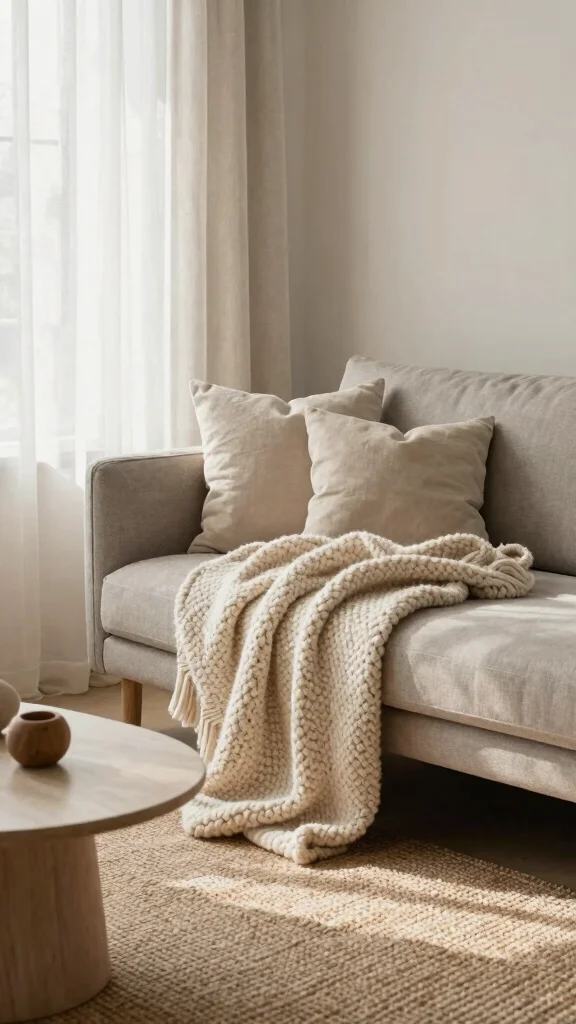 – Cozy Textured Layers: Introduce a mix of materials such as soft throws and woven rugs to add warmth without clutter.