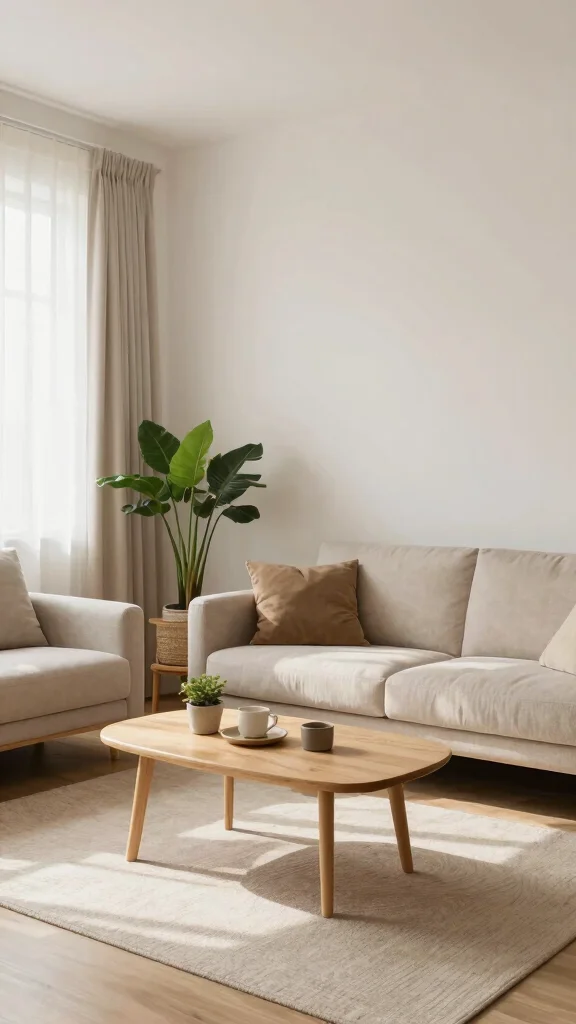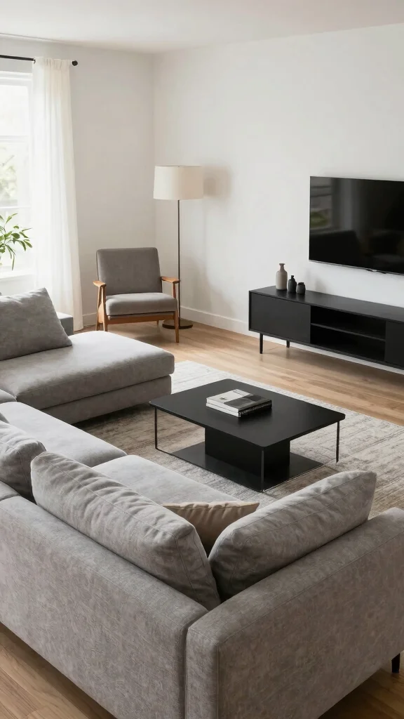In a minimalist living room, less is more. Choose a few decorative accessories rather than overcrowding surfaces. Think about items like a single vase of flowers or a unique sculpture. These pieces should complement your furniture arrangement without overwhelming it. Keep the color palette neutral to maintain a calm environment, focusing on quality over quantity.