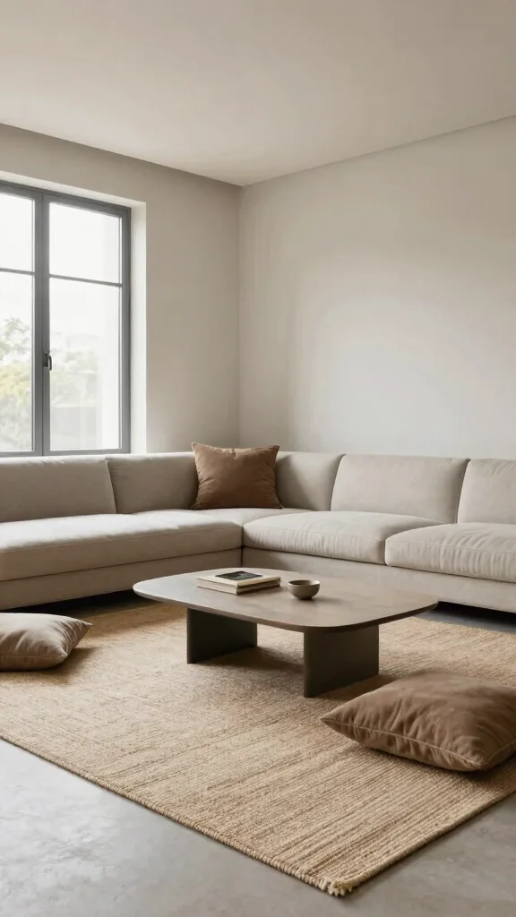 A carefully chosen rug can anchor your minimalist living room, adding warmth and definition without clutter. Look for rugs in solid colors or subtle patterns that enhance the room’s aesthetic while emphasizing simplicity. Natural fibers like wool or jute create an organic feel, contributing to a balanced environment.