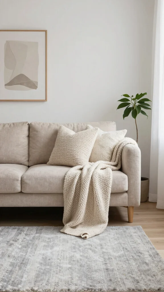 This strategy enriches your living space, inviting comfort while adhering to minimalist ideals.