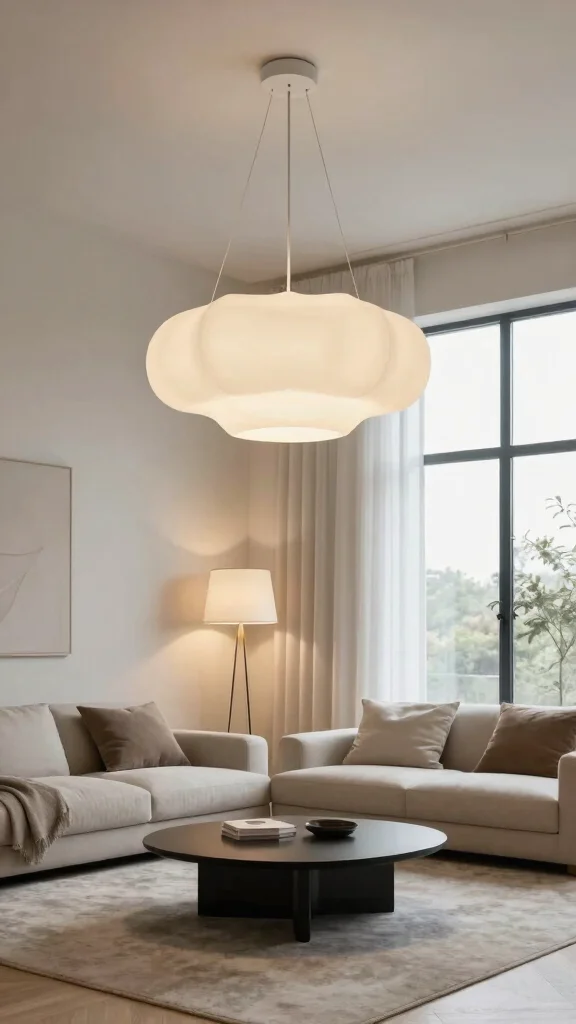 Statement lighting acts as a functional piece of art in your minimalist living room, adding character without clutter. Consider sculptural floor lamps or unique pendant lights that draw attention and elevate the overall design. Effective lighting should be both stylish and practical, enhancing the ambiance while illuminating the space.