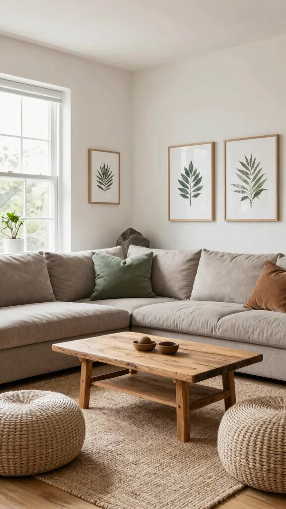 These sustainable materials not only enhance your living room’s aesthetic but also support eco-conscious living, making them perfect for a minimalist lifestyle.