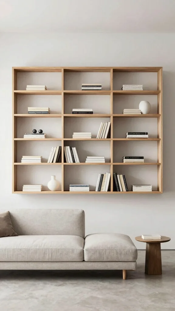 Effective shelving solutions are crucial for maintaining an organized and stylish minimalist living room. Seek designs that minimize visual bulk while providing ample storage and display opportunities, keeping your space clutter-free.
