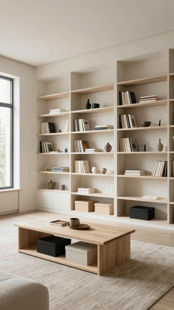 Built-in shelving can blend functionality within the architecture of your room, providing a seamless look. Additionally, invest in coffee tables with drawers or ottomans that can store items inside, keeping essentials out of sight.