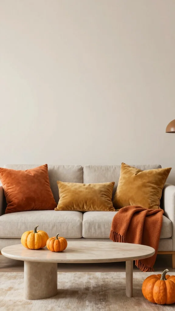 Refreshing your space with seasonal decor changes keeps the minimalist aesthetic engaging and dynamic. This approach allows you to transition your living room’s vibe throughout the year without cluttering the space. Opt for a few key decor pieces that can be swapped out seasonally, like cushions or throws.