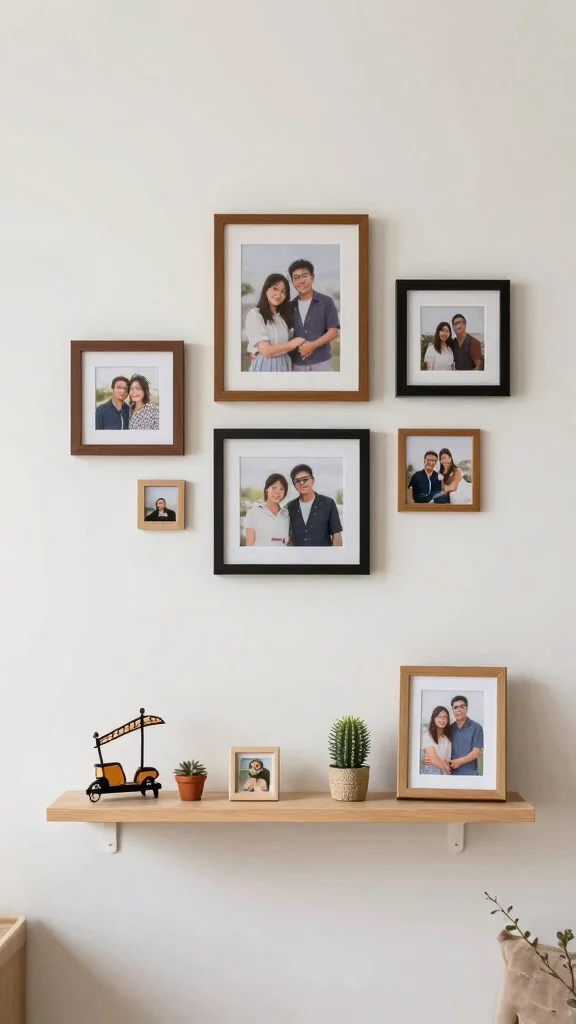 Personalizing your minimalist living room with personal touches creates a home that feels uniquely yours. This might include showcasing favorite photographs, travel souvenirs, or meaningful artwork. Vintage or handcrafted decor can add warmth and character while adhering to minimalist principles.