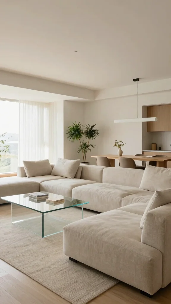 Start with a sofa with a slender silhouette and low profile, a simple coffee table in wood or stone, and a streamlined media console. Add discreet storage that hides clutter, and choose lighting that creates zones—floor lamps or wall-mounted fixtures work well in open spaces. Stick to minimalist furniture with clean lines, and keep colors within your neutral color palette to maintain calm.