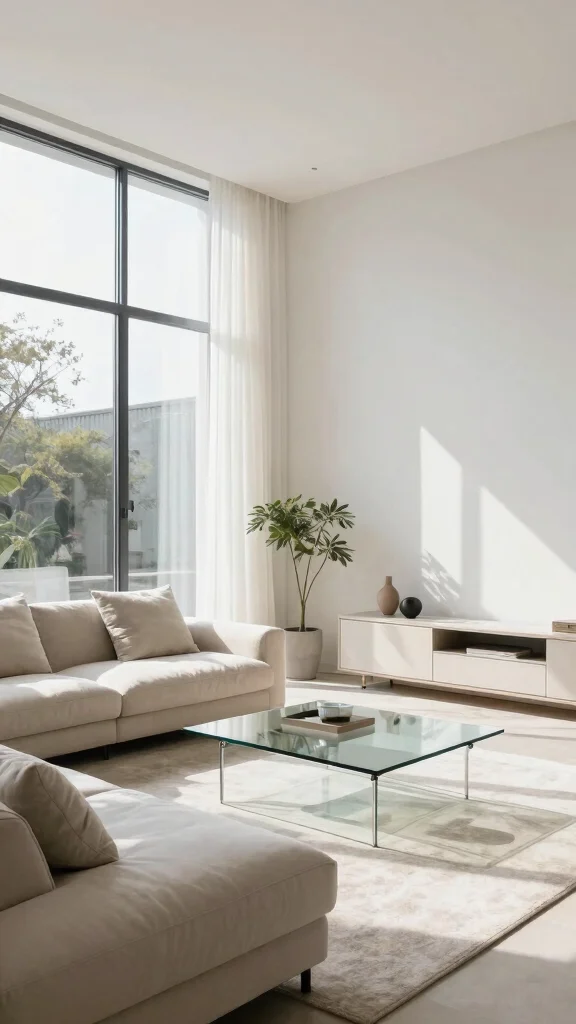 Layer textures like linen, wool, jute, and boucle to add depth. Mix matte finishes with subtle sheen in materials such as wood, metal, and ceramic. Introduce color only via accents—think one or two throws or a single artwork—so you stay within a neutral color palette. Add living greenery to bring life and warmth, and rely on open space design and thoughtful composition to keep the space engaging. This aligns with modern minimalist living room minimalism interior design goals.