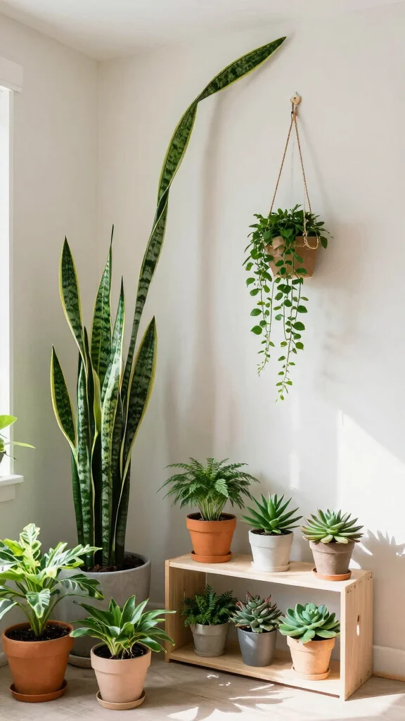 Strategically position your plants to soften the hard lines of furniture and fill empty corners. Hanging planters can add a unique touch without occupying floor space.