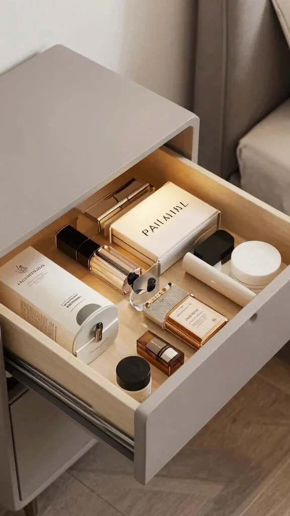 This method enhances your nightstand’s aesthetic while making it easier to find what you need amidst the clutter.