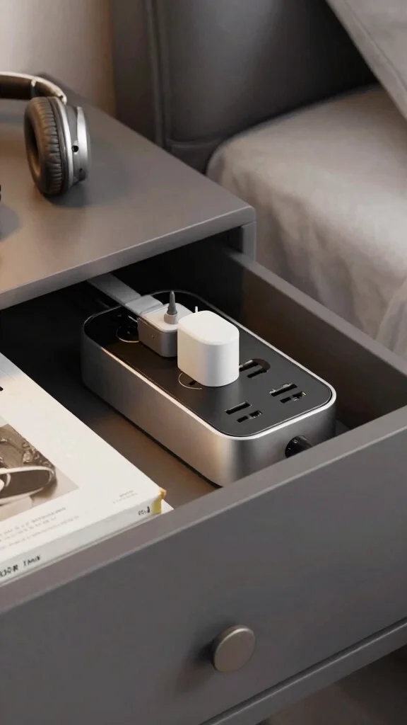 This approach not only reduces clutter on your bedside table but also ensures your devices are organized and accessible.