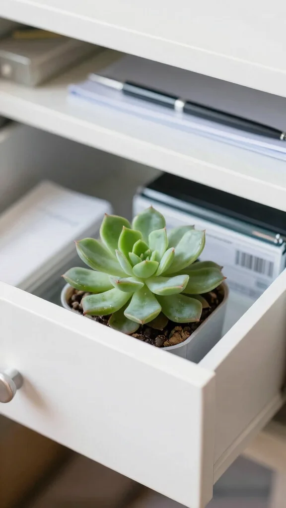 Adding small plants to your drawer not only enhances aesthetics but also improves air quality. Consider low-maintenance plants that can thrive in your office environment.