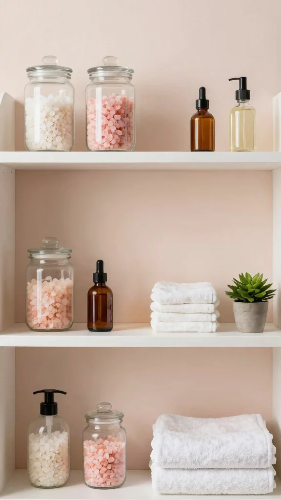For spa-like styling, maintain a neutral palette with soft tones that evoke serenity. Incorporate natural materials, such as bamboo or wood, to add warmth and texture. Choose decor that serves a purpose, like beautifully designed storage jars, to enhance functionality while looking stylish.
