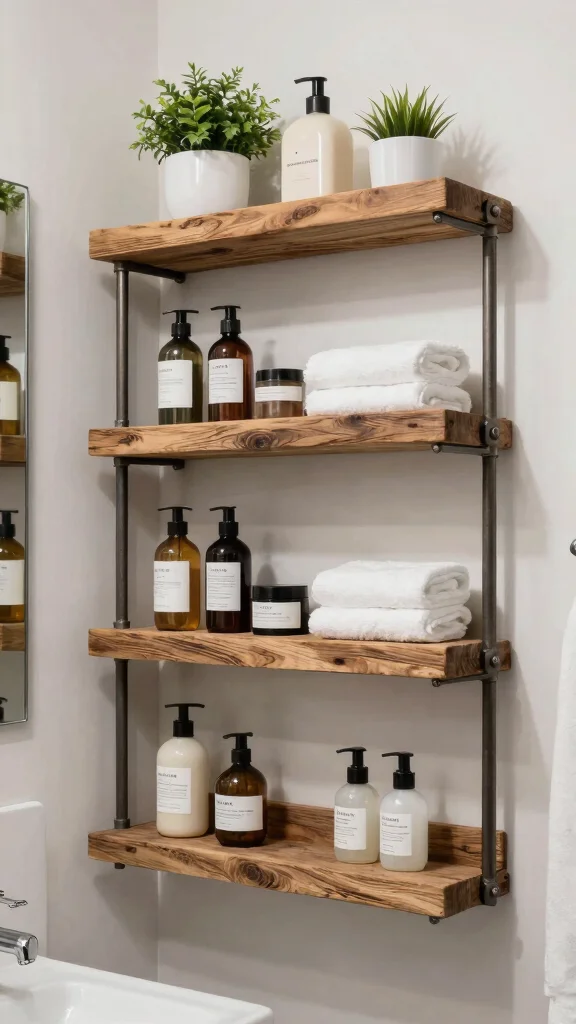 Think about the overall style of your bathroom decor. Are you going for a minimalist look or something more rustic? Floating shelves offer a clean, contemporary vibe, while reclaimed wood shelves bring warmth and character. Industrial-style shelves can add an edgy feel, perfect for modern spaces. Choose a style that complements your existing fixtures and colors.