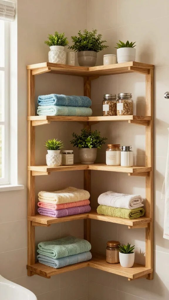 Corner shelves can transform an empty corner into a functional and inviting storage area, enhancing your bathroom’s overall design.