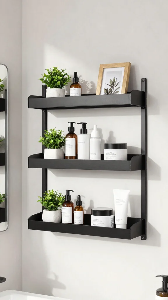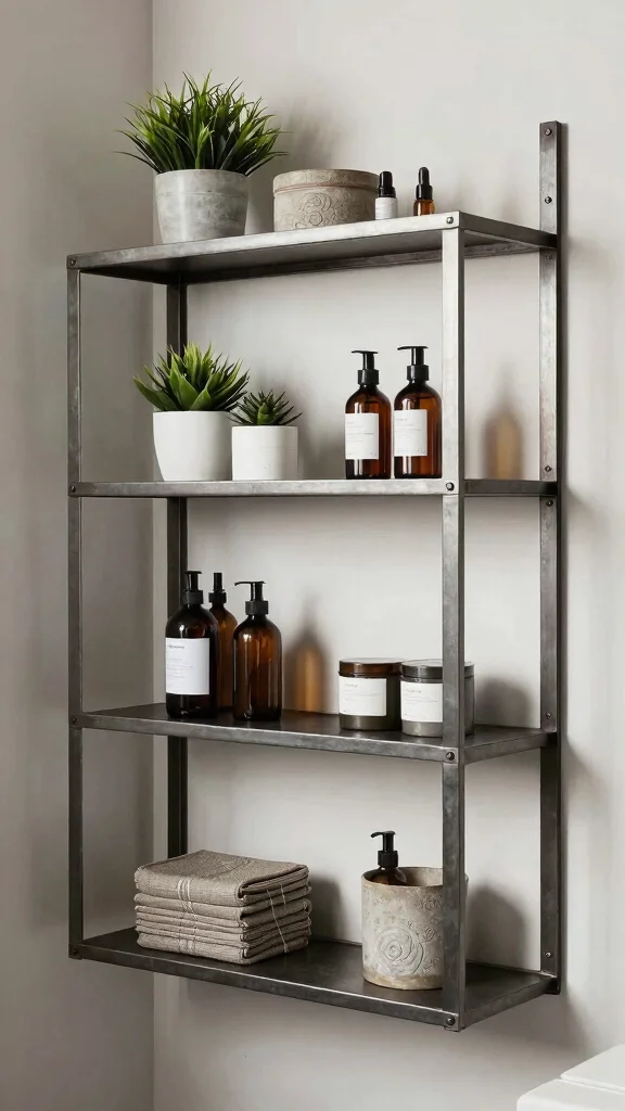 For a bold and trendy look, industrial-style metal shelves can add a unique edge to your bathroom decor. Their rugged appearance contrasts beautifully with softer elements, enhancing the overall aesthetic of the space. These shelves bring an urban flair while providing practical storage solutions.