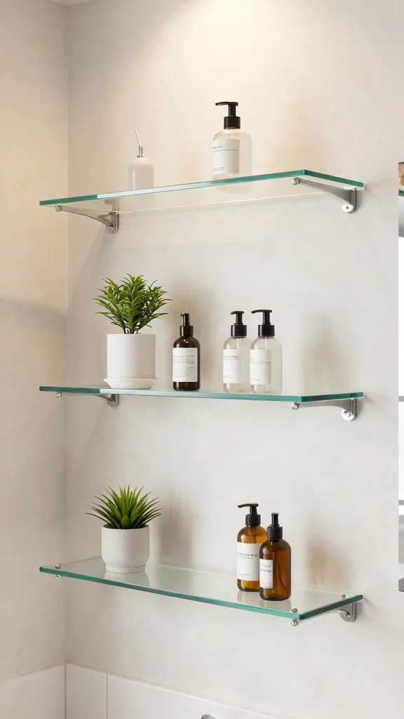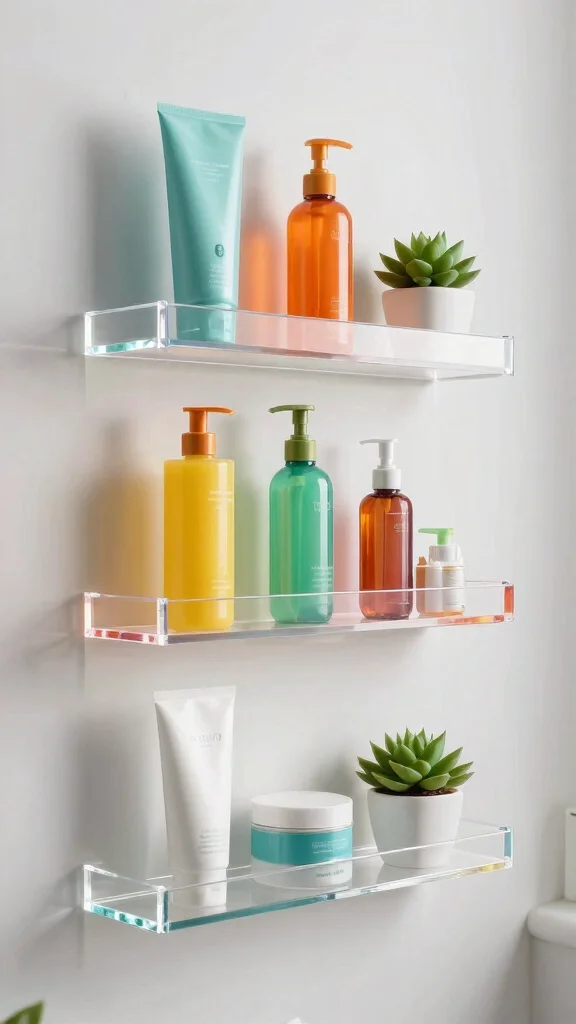 Acrylic shelves are a sleek, modern solution for bathroom storage. Their transparent design allows them to blend seamlessly into any space, giving the illusion of more room while showcasing your decor beautifully. This contemporary approach can elevate your bathroom’s style effortlessly.
