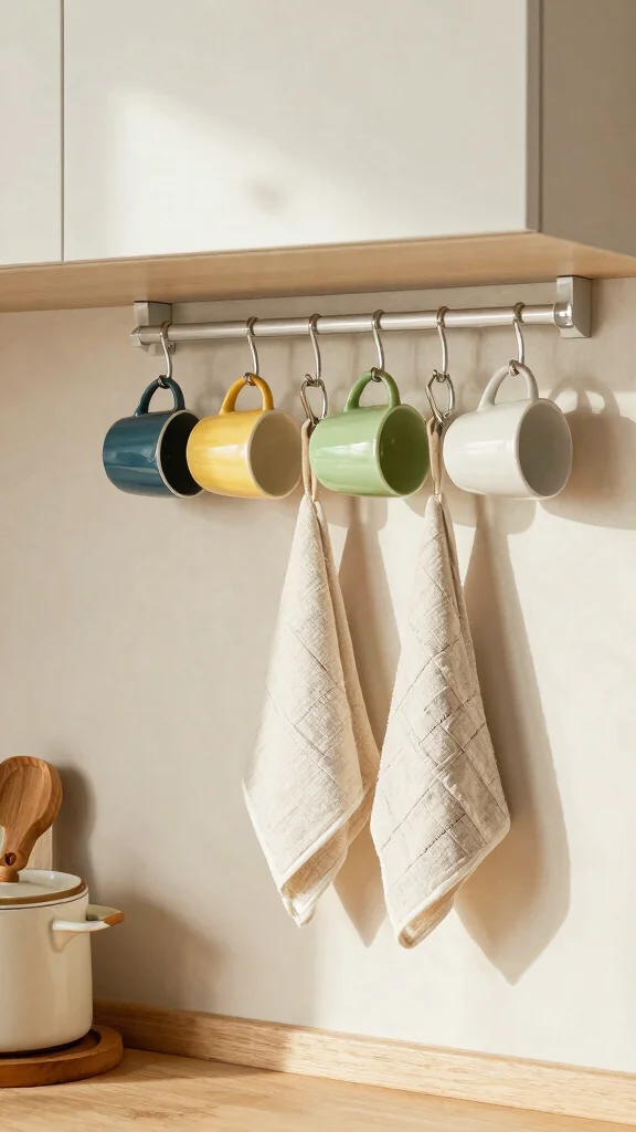 Installing hooks in your kitchen is a simple yet effective way to enhance organization while adding a personal touch. By placing hooks under cabinets or on walls, you can easily hang mugs and towels, keeping them accessible while infusing character into your space. Imagine a row of colorful mugs displayed cheerfully, ready for use when needed.