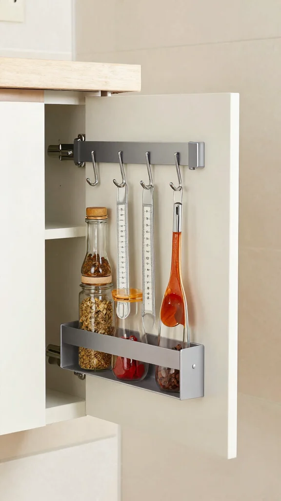 The inside of your cabinet doors is a treasure trove of storage potential often overlooked in small kitchens. By adding small shelves or hooks, you can transform this underutilized space into a functional storage area ideal for spices, measuring spoons, or cutting boards. Imagine opening a cabinet door to find neatly arranged items that were once cluttering your countertops.