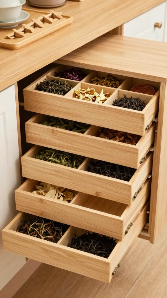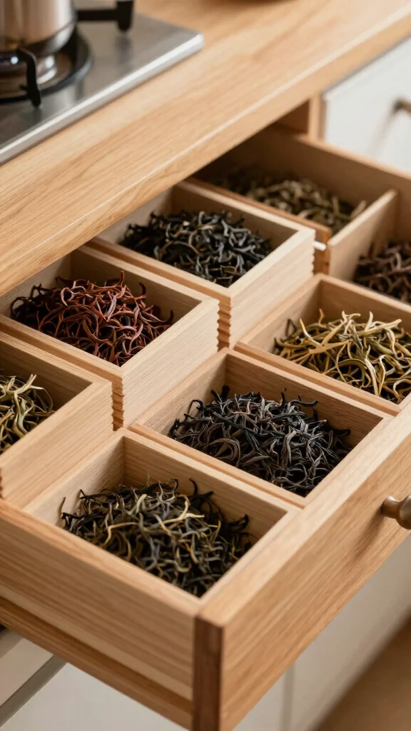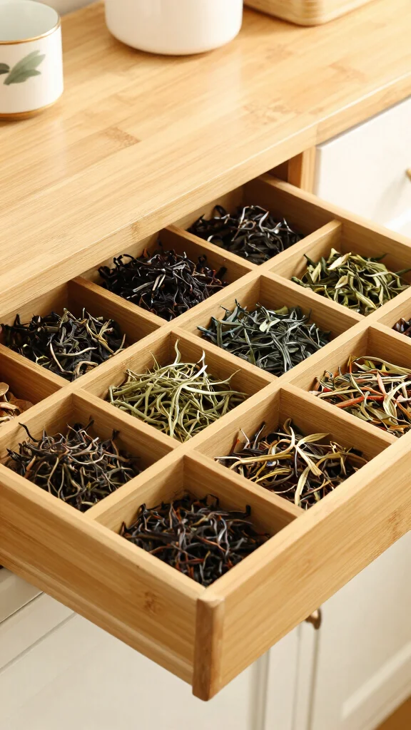 Invest in bamboo dividers to create sections in your tea drawer, making it easy to find your favorite blends.