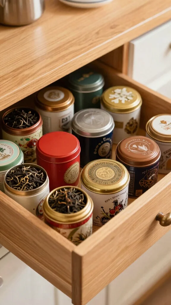 Add a nostalgic flair to your tea drawer with vintage tea tins. These charming containers not only keep your teas fresh but also serve as decorative pieces that tell a story. Scouring thrift stores or antique shops for unique designs can lead to delightful finds, allowing you to create an organized and visually appealing display. Each tin can hold a different type of tea, offering a touch of artistry to your kitchen.