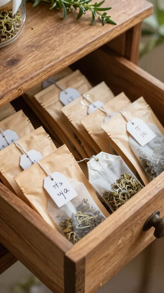 Store herbal tea bags in eco-friendly pouches to maintain freshness and add a sustainable flair to your collection.
