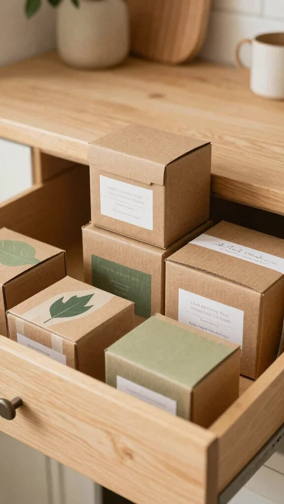 Use natural materials for labels to categorize your teas, ensuring an organized and stylish drawer that’s also sustainable.