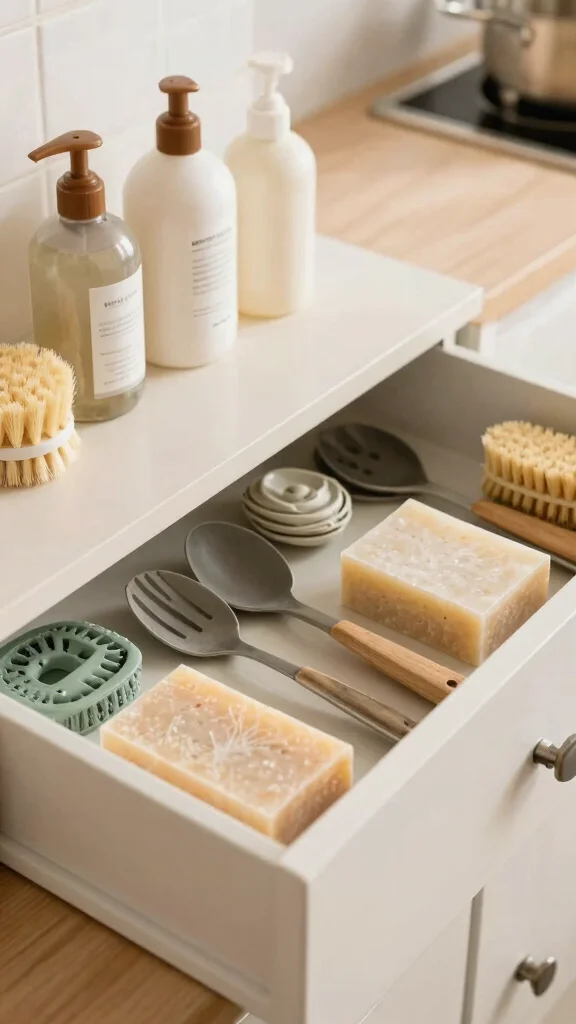 Get ready to dive into a variety of organization techniques, from using sustainable bamboo drawer dividers to upcycled jars for utensil storage. These ideas are stylish, functional, and perfect for enhancing your kitchen organization while being kind to the planet. Let’s get started!