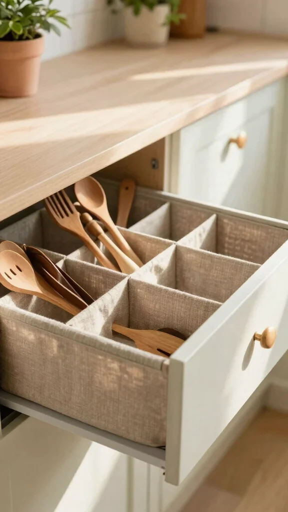 Craving a softer touch in your kitchen organization? Natural fabric organizers made from cotton or linen can bring warmth and charm to your utensil drawer. Theyβre lightweight and washable, making them a practical choice for eco-friendly living.