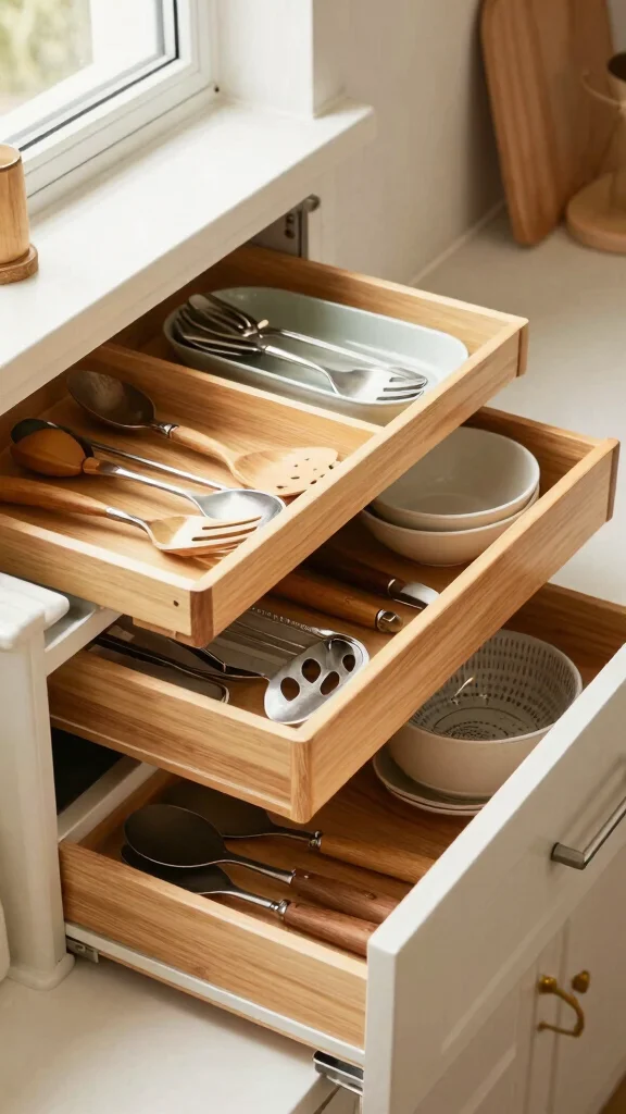 Use slim, adjustable drawer dividers to maximize unused space and create dedicated zones for kitchen organization.