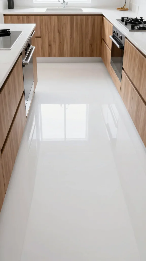 This flooring choice enhances your kitchen’s modern appeal. The smooth surface invites creativity while pairing beautifully with various design elements.