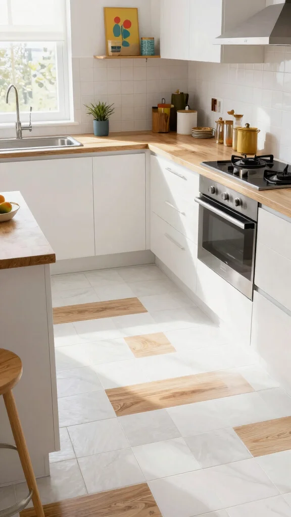 This flooring choice adds creativity to your kitchen. The blend of materials enhances visual interest, making your space a reflection of your personal style.