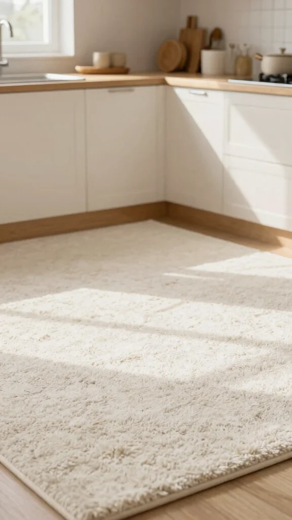 Foot comfort is another crucial factor, especially if you spend a lot of time in your kitchen. Hard surfaces can be tough on your feet, so think about adding rugs or opting for softer materials like vinyl plank flooring. If you prefer something cozy, soft white carpeting can make your kitchen feel inviting while providing a comfortable surface to stand on.