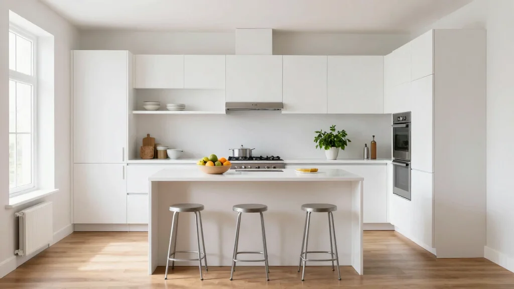 For a cohesive white kitchen design using minimalist kitchen ideas, keep the palette tight and rely on texture rather than color to create interest. Choose one or two finishes (e.g., white high-gloss cabinets and a matte white floor) and let natural light do the rest. Limit hardware and clutter, and opt for clean lines in your kitchen decor. Balance white floors with subtle contrast—think a warm wood countertop, brushed nickel hardware, or a soft gray grout—to avoid a sterile look while preserving the clean aesthetics. By aligning elements across cabinetry, countertops, and decor, you’ll achieve a serene, modern white floor kitchen that feels calm and inviting.