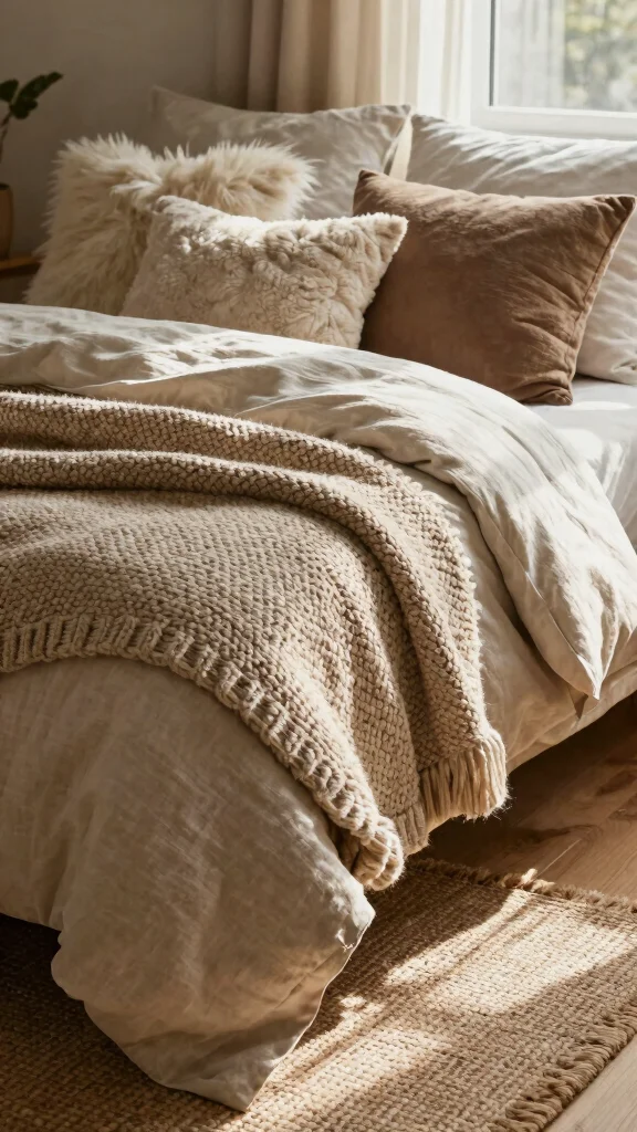This layered look invites warmth and comfort into your bedroom, creating an inviting sanctuary.